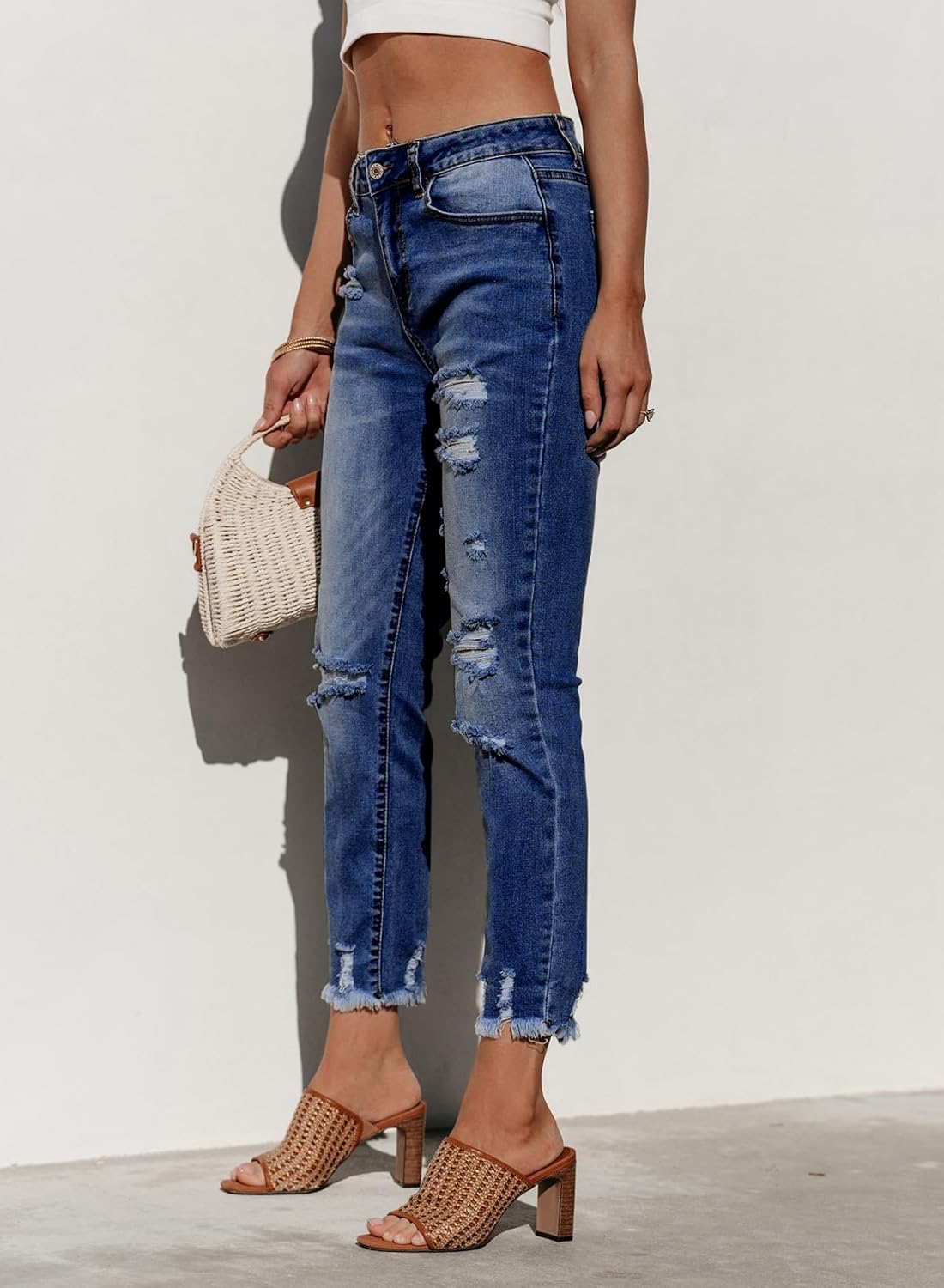 Sidefeel Women’s Ripped Jeans Straight Leg Distressed Boyfriend Denim Pants